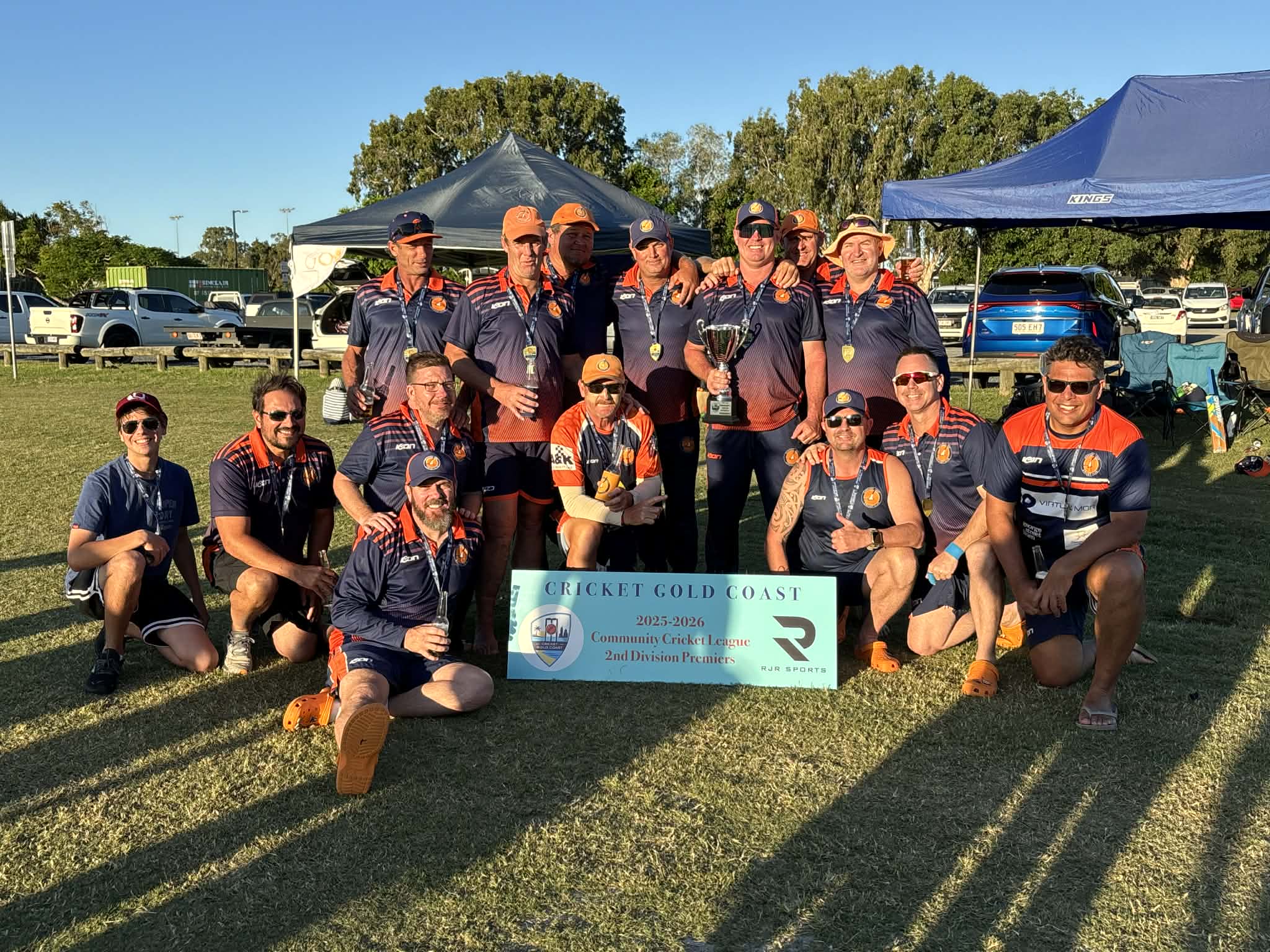 Saturday the 28th of March 2026 spelled the end of what had been a gruelling yet successful season for the Bay 2s. With the Bay hosting a home grand final, the boys arrived early at the ground and as we all tried to keep ourselves busy preparing warm up routines, filling water bottles and setting up all the tech needed to support a game of park cricket these days, the tension was beyond palpable. After rolling up yet another belter, Phil was away for the weekend and we knew if we won the toss, runs on the board would be the way to go. When the time for the coin toss finally arrived, the Mudgeeraba Skipper, after momentarily gazing upon the late Queen Elizabeth II’s head, declared gleefully, ‘we will definitely not bowl!’