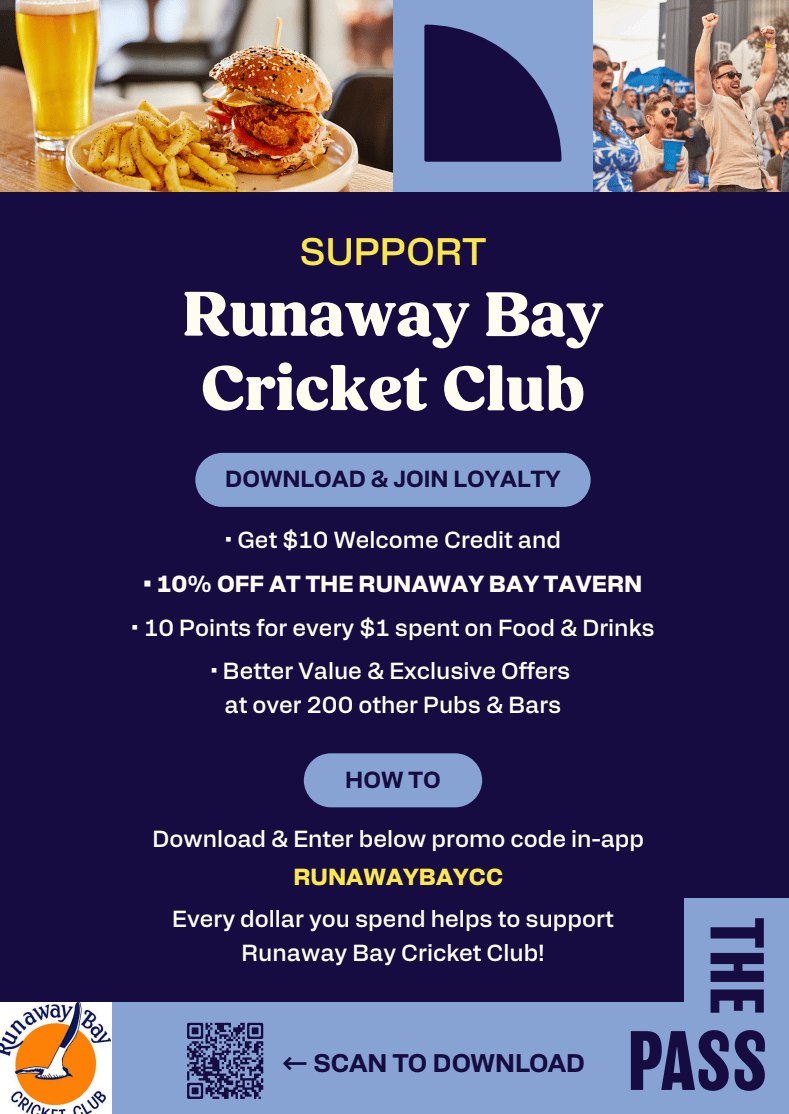 👉 Every dollar you spend at the Runaway Bay Tavern helps support the Runaway Bay Cricket Club — it’s that easy!