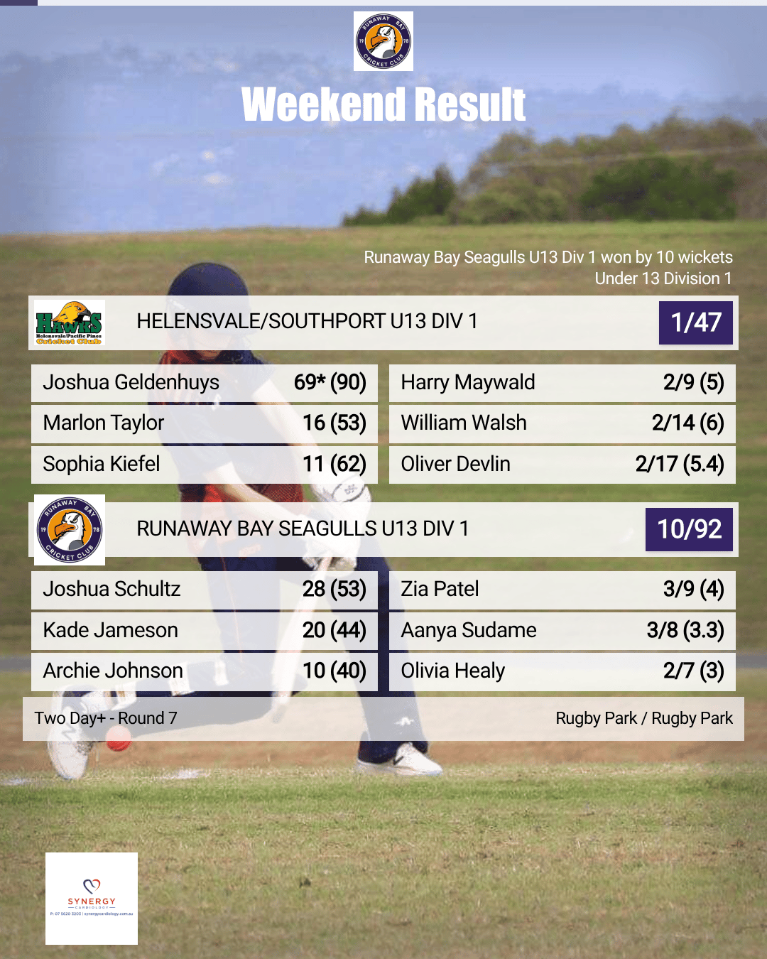 Match Report: Runaway Bay Seagulls U13 Div 2 vs. Palm Beach U13 Gold