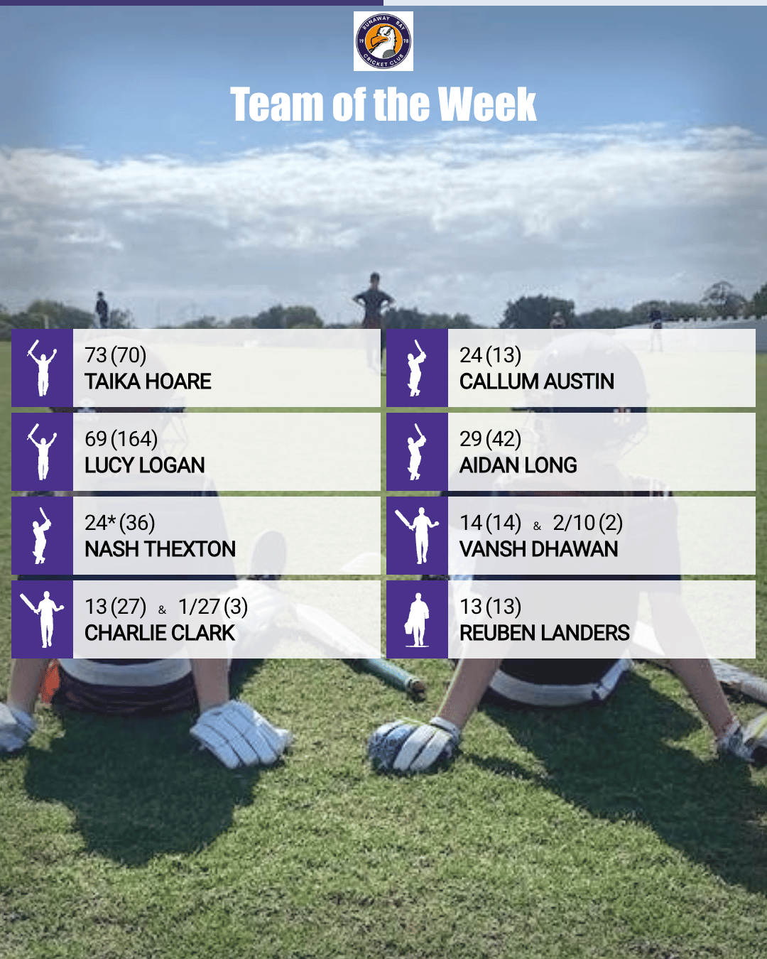 For the second week in a row, the innings was built around an excellent opening partnership between Lucy Logan and Taika Hoare, who combined patience with controlled aggression to take the game forward. Lucy was the anchor, batting deep into the innings for a composed 69 from 164 balls, showing great discipline and resilience against a probing Helensvale attack. Her innings ensured stability at the top and allowed others to bat around her.