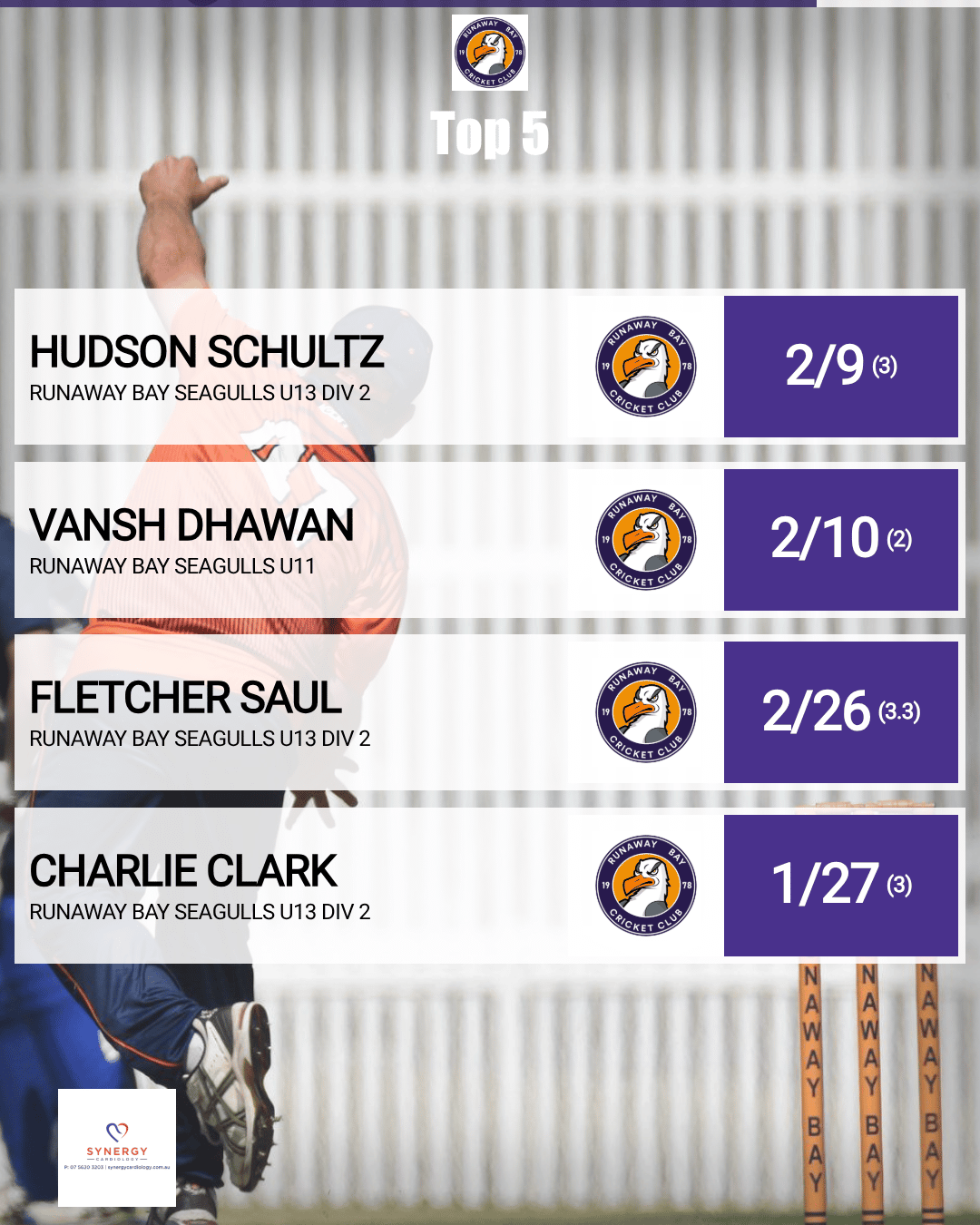We opened the bowling with Ziggy and Callum Ziggy going for 7 off his 2 overs and Callum 18 off his 2 Alex came on and bowled exceptionally well for 5 off his 2 Arthur followed suit and bowled a really tight 2 overs for 4, Reuben and Vansh were next on Reuben 8 off 2 and Vansh our only wicket taker of the day 2 for 10 off 2 bowled with great accuracy Zach and Sadie bowling 3 overs each Zach really nice and tight going for only 12 runs while Sadie bowling magnificently for 13 Harry wicket kept in the first 10 and a big shout out to him done a great job taking a catch while his bowling figures were 9 off his 2, our other 2 wickets came from direct hit runouts from Callum we kept Coomera to 118 winning by 3 runs