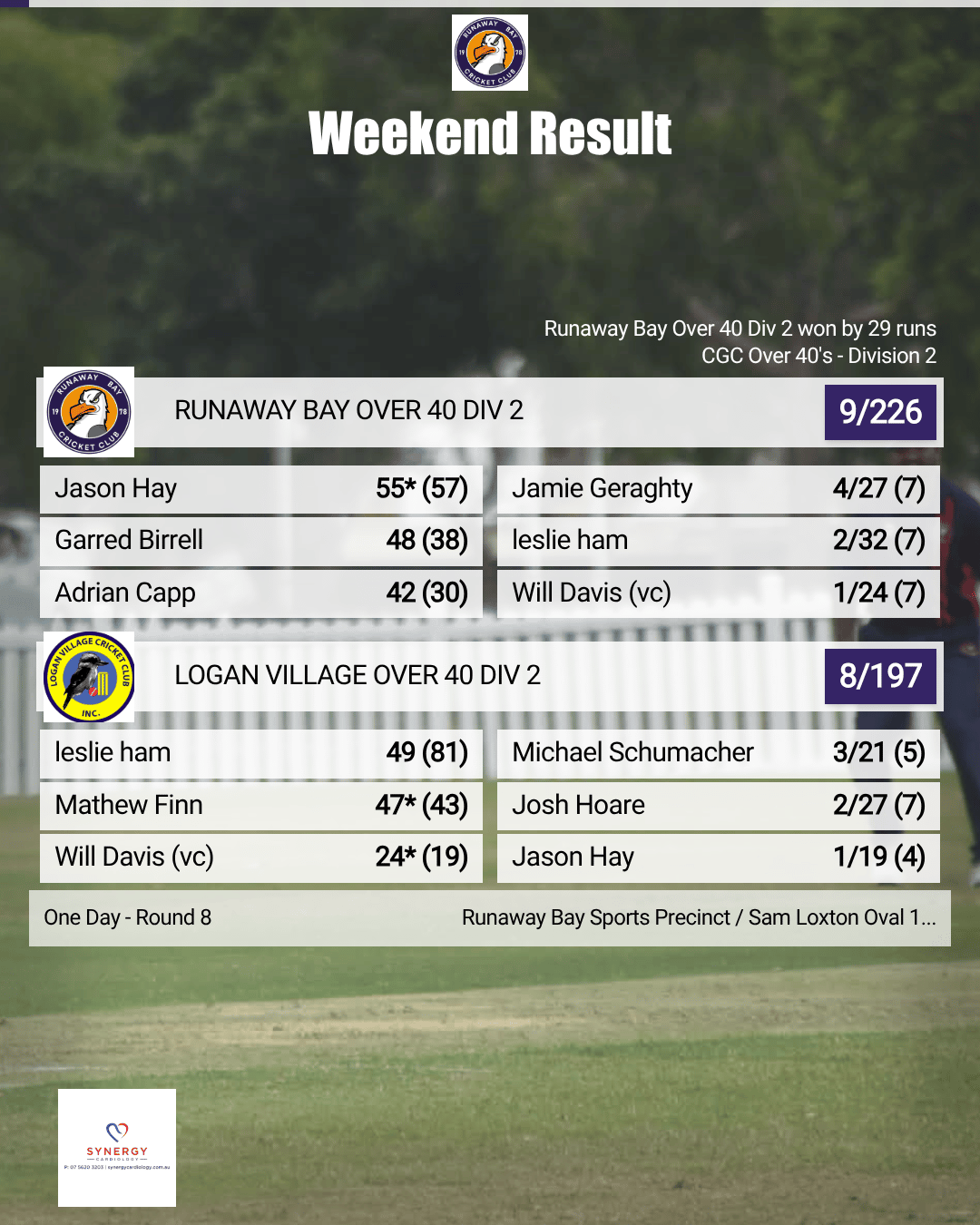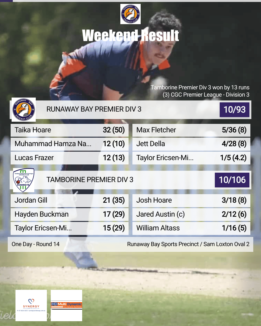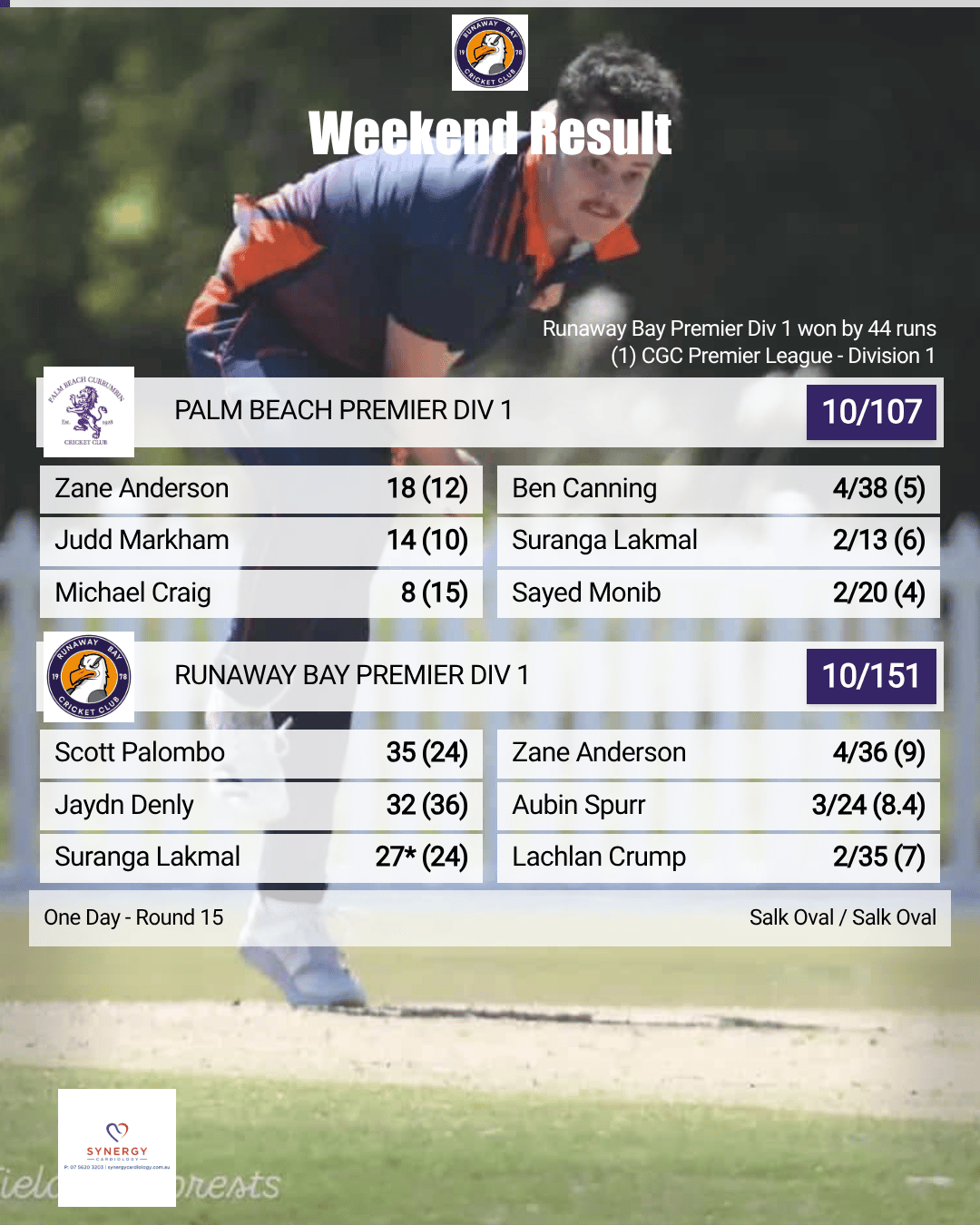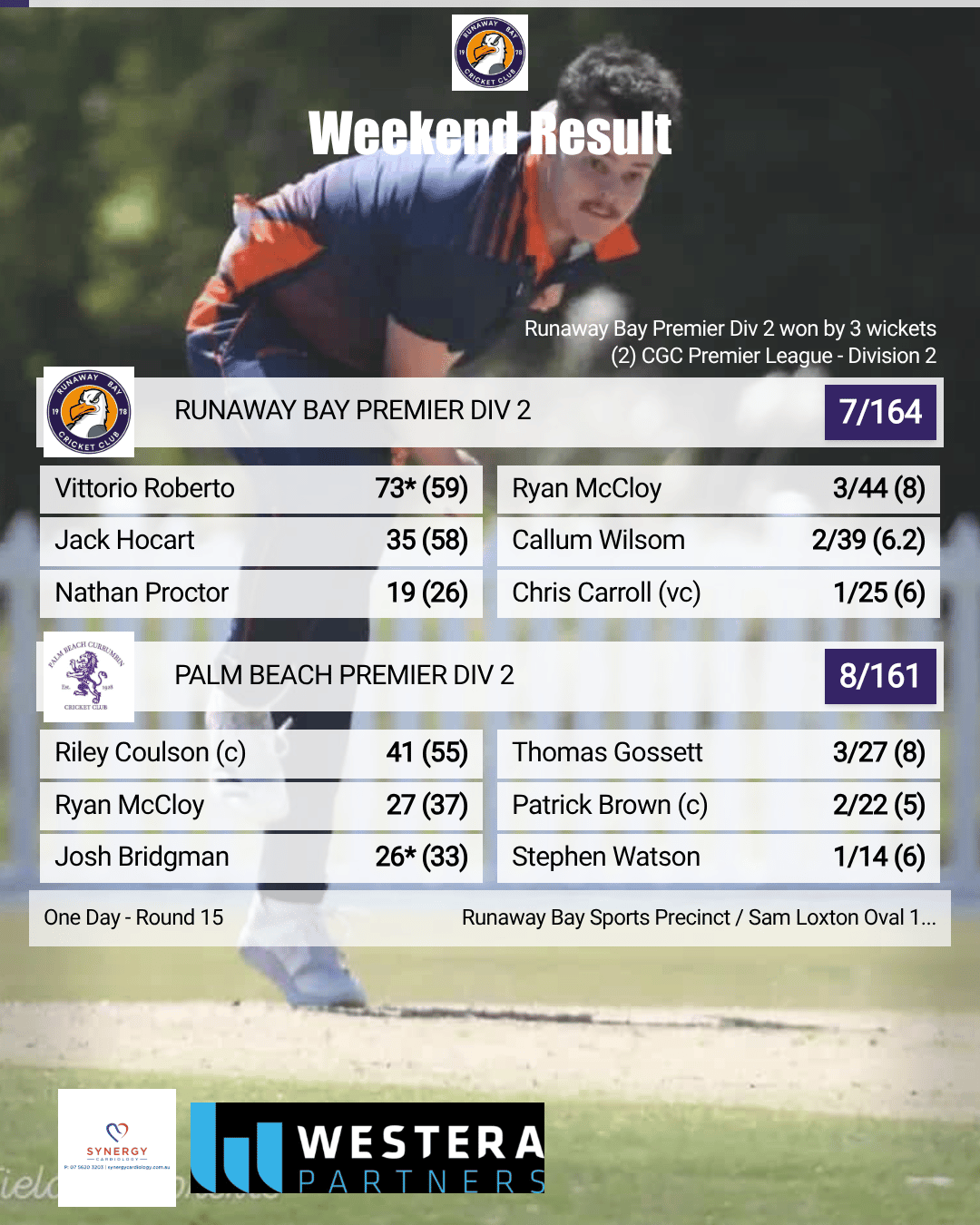 It was a complete team performance from Runaway Bay Orange — dominant with the bat, disciplined in the field, and composed with the ball — highlighted by four batters passing fifty and a total that proved well beyond reach. A result that will give the side plenty of confidence as the season continues.