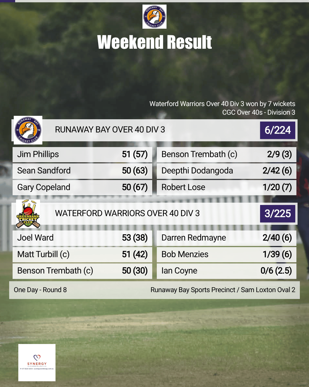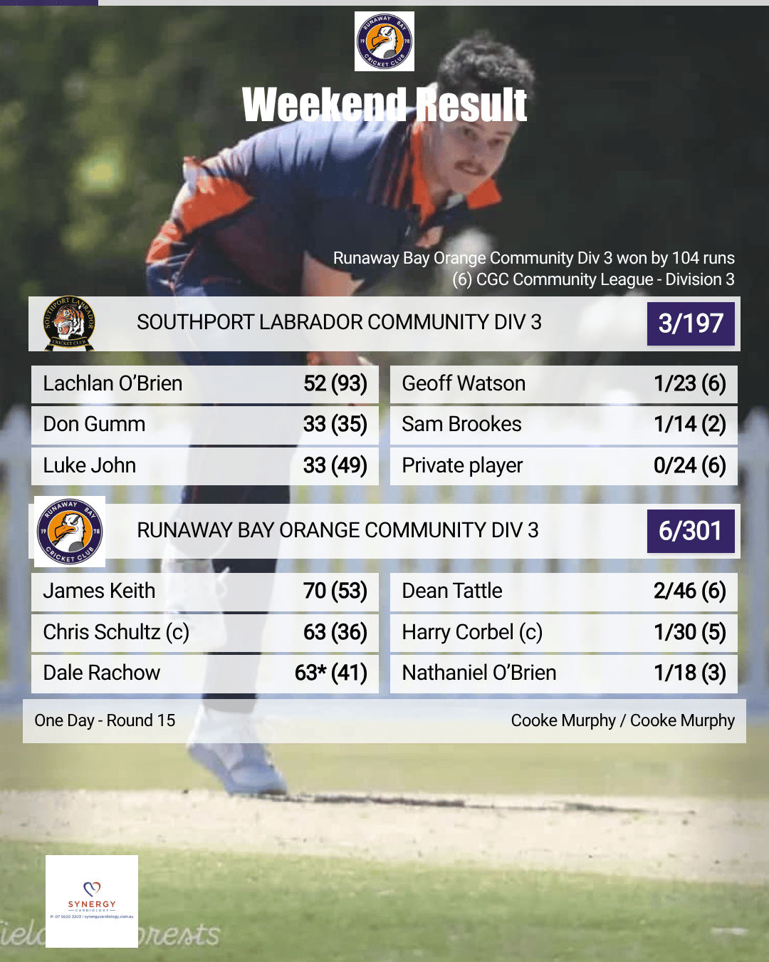 Runaway Bay delivered a batting masterclass on Saturday afternoon, piling on a huge 6/301 from 36 overs before comfortably restricting Southport Labrador to 3/197, sealing a convincing 104-run victory.