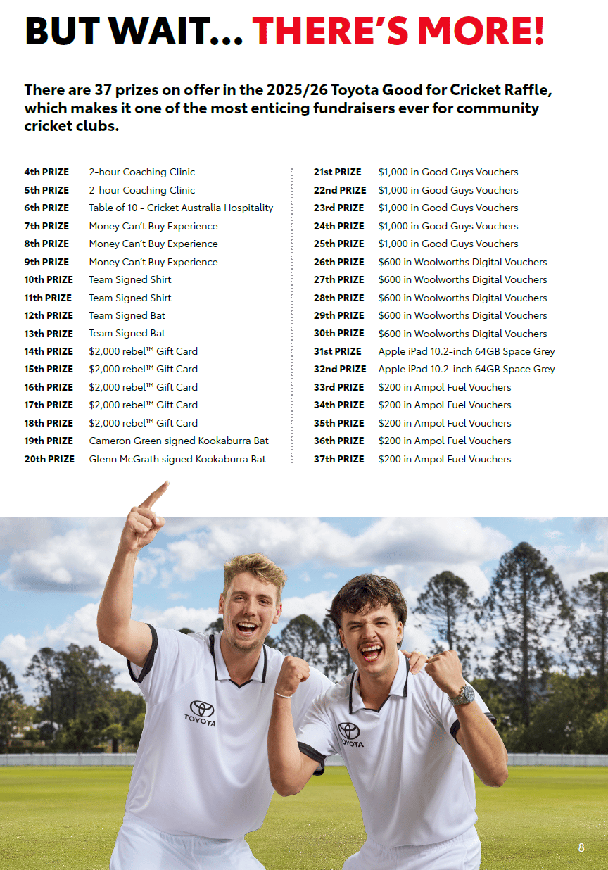 The Toyota Good for Cricket Raffle is the ultimate fundraising all-rounder! 🙌
